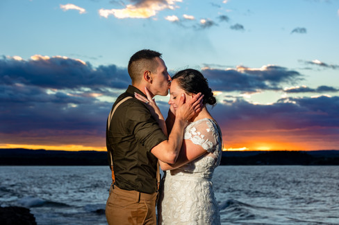 The weather also brought some surprise waves splashing the rocks and catching Amber and Drew by surprise. They were up for the adventure though and laughed through it all. They brought their favorite Cheesecake Factory cheesecake as their wedding treat. We all enjoyed a slice to end a wonderful evening and send them off to celebrate further with their family. We couldn't have asked for a better couple or more picturesque backdrops for their wedding day.